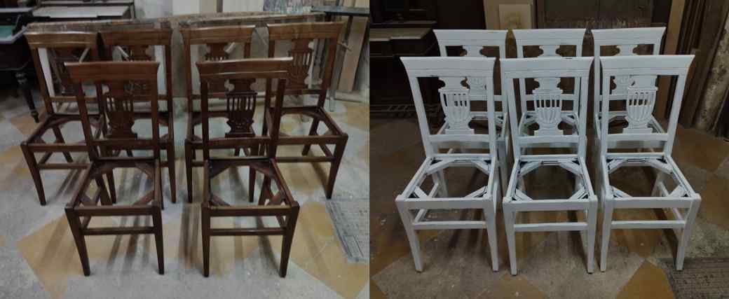 N.6 Sedie Color Noce Verniciate Shabby Chic