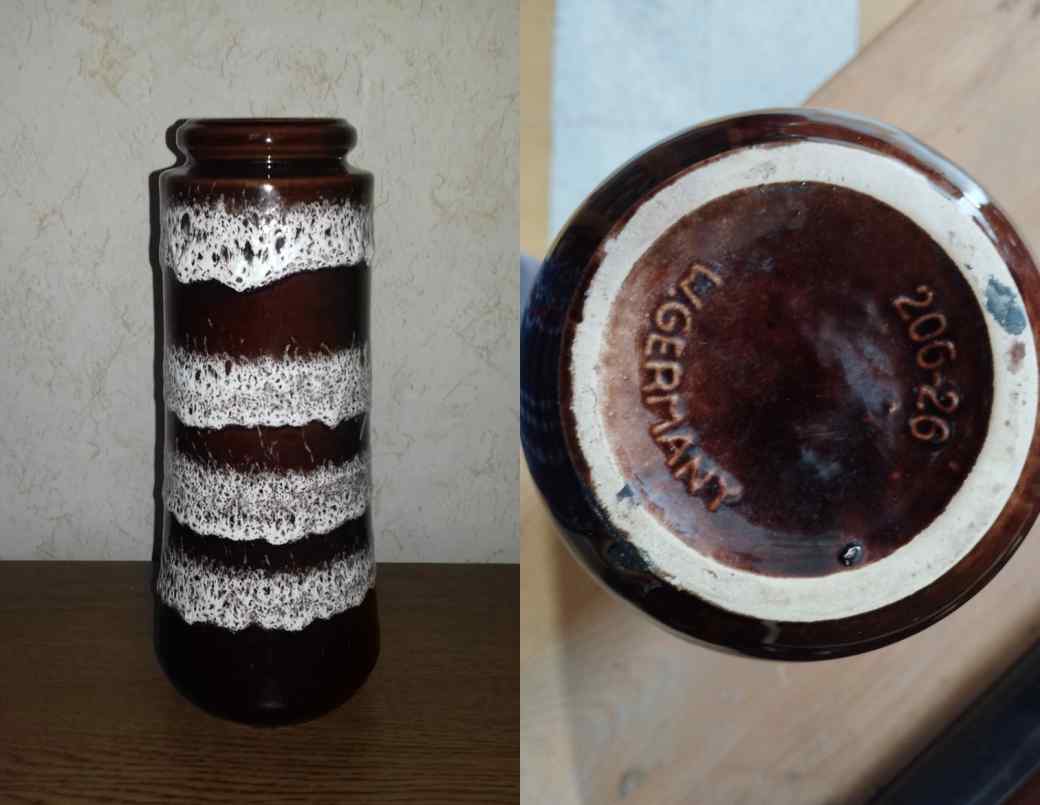 Vaso Scheurich Anni 70 Altezza 26 cm. Bianco e Marrone Fat Lava Vintage